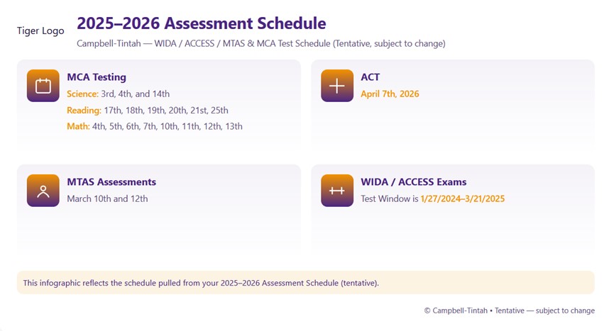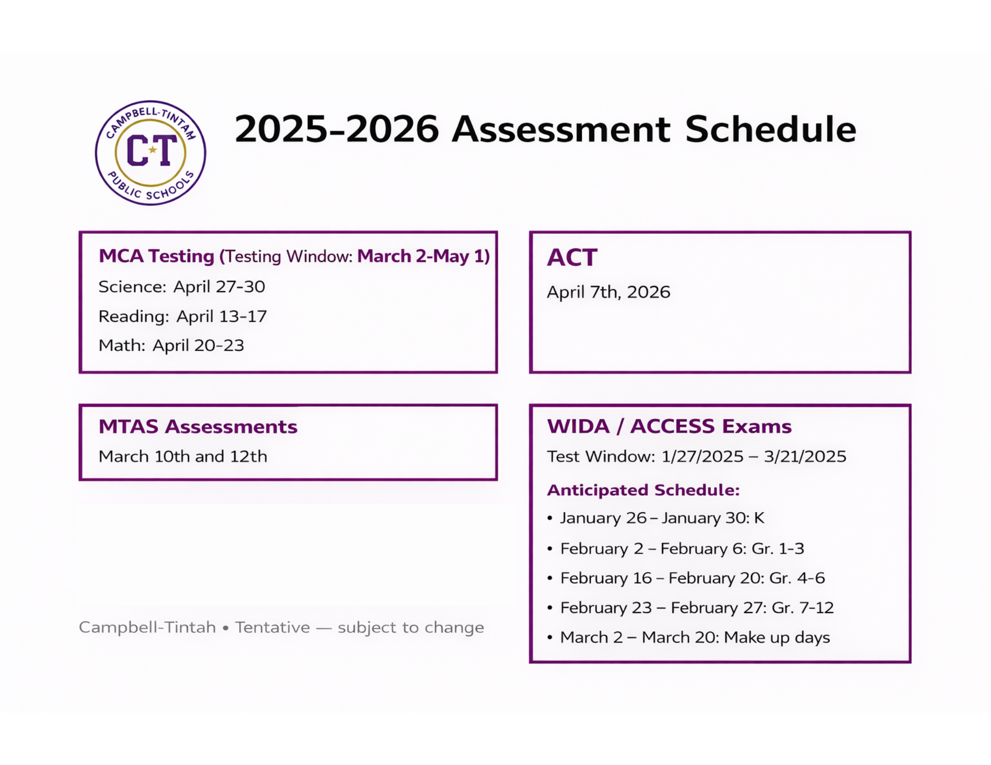 Campbell-Tintah 3-12 & K-12 WIDA/ACESS/MTAS and MCA Test Schedule