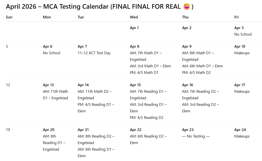 We encourage all students to take part in the MCAs, however, if a parent/guardian does not want their child to participate they can opt out of testing. Minnesota Statutes, section 120B.31, subdivision 4a, requires the commissioner to create and publish a form for parents and guardians to complete if they refuse to have their student participate in state-required standardized assessments. If you chose to opt out of testing, the below link will take you to the refusal paperwork that must be filled out and returned to the school.